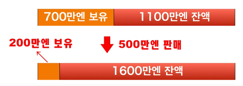 투자금액 700만엔 중에 500만엔을 팔았을 경우,