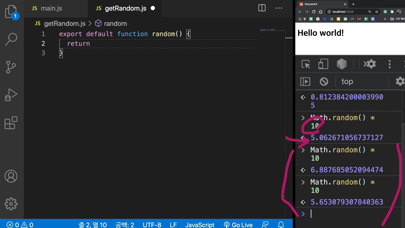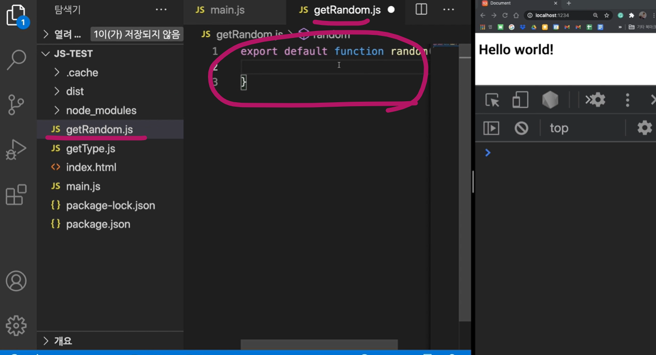 main.js 주변에서 'getRandom' 이라는 JS파일을 가지고 올 수가 있겠고요,