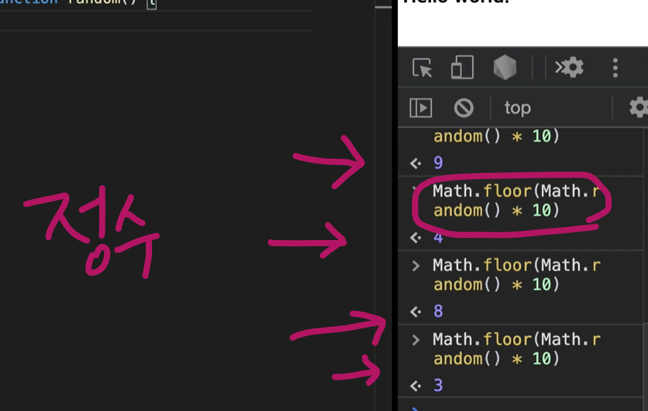 #소수점 부분 숫자는 버려주는 Math.floor(Math.random() * 10)