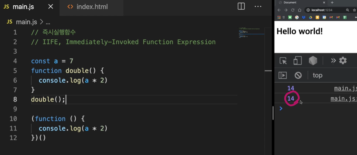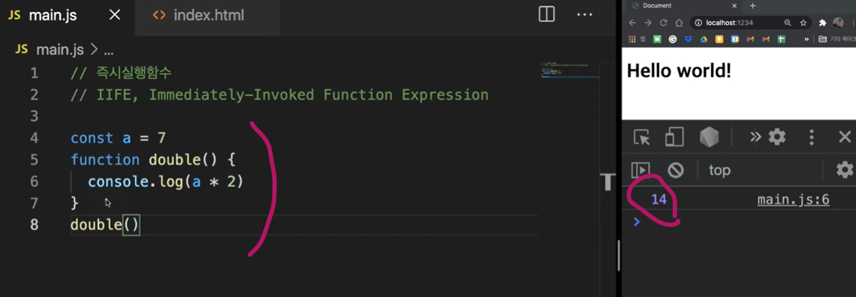 이렇게하면 이것이 바로 즉시실행함수라는 개념이 된 것이고요.