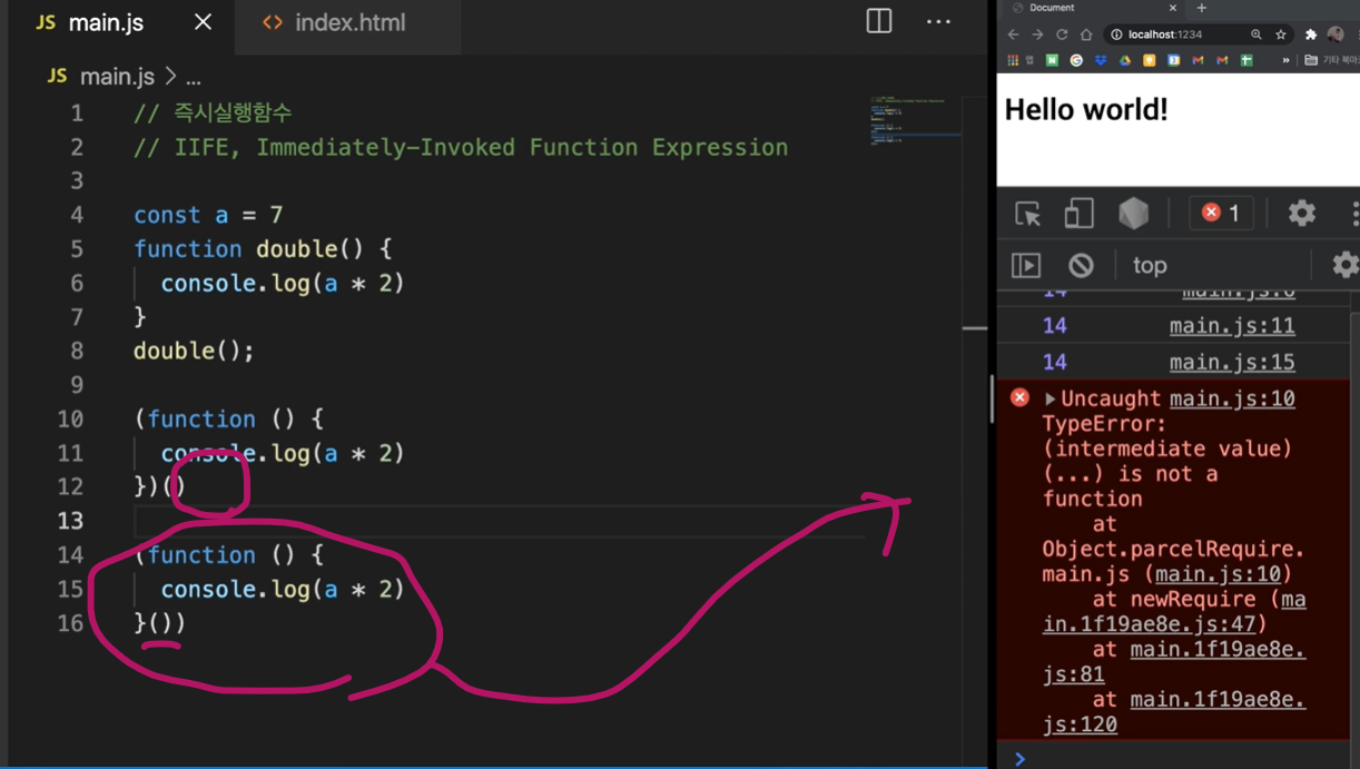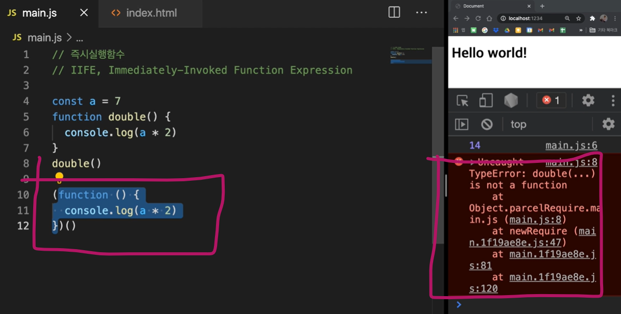 자 그래서 불편할 수 있겠지만, 즉시 실행 함수를 사용할 때는 이렇게