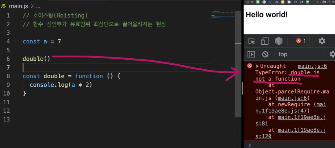 그래서 우리가 함수표현을 사용했을 때는 이렇게 더블이라는 것을