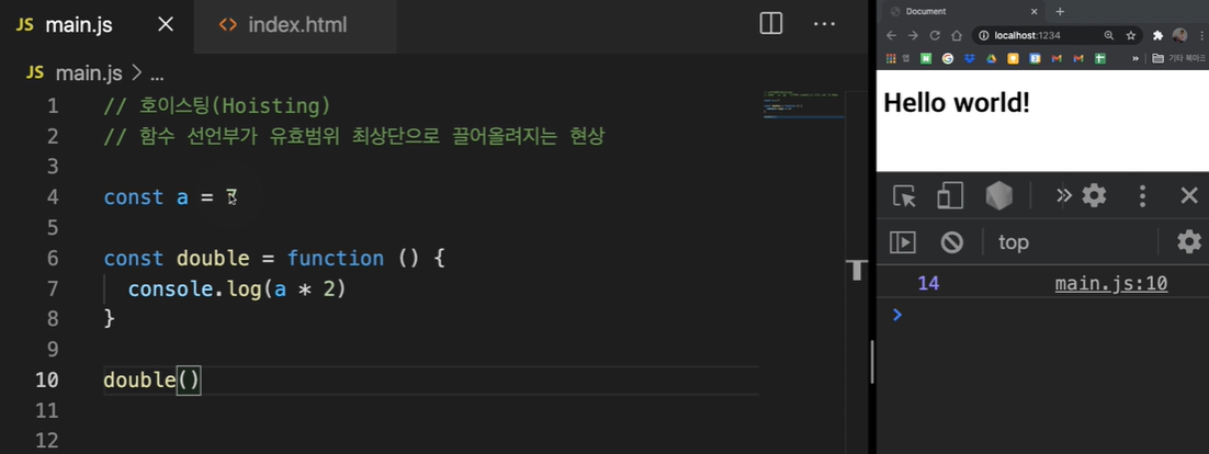 #함수선언을 작성하실 때 되도록 hoistiong현상을 이용해서 맨 밑에다가