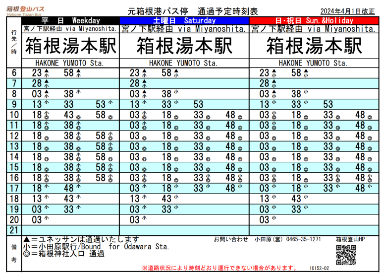 모토하코네항(元箱根港), 버스정류소 1번,에서 출발