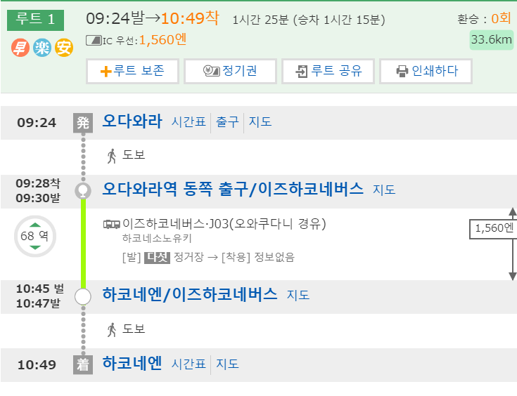 오다하라역에서 하코네원까지